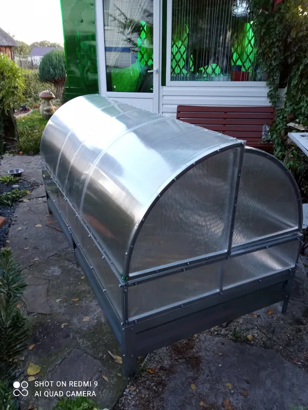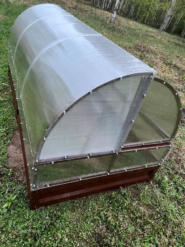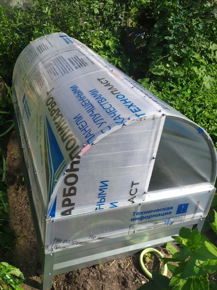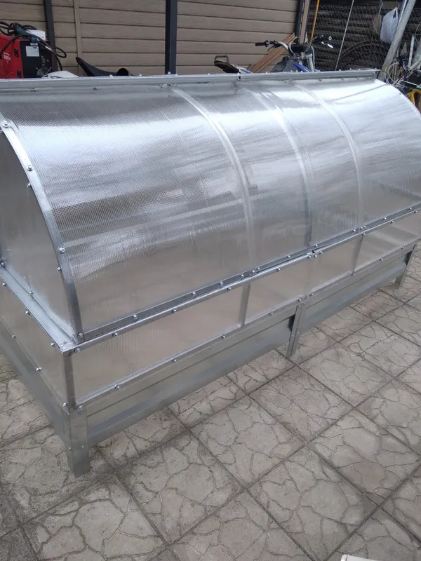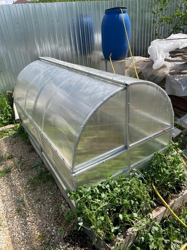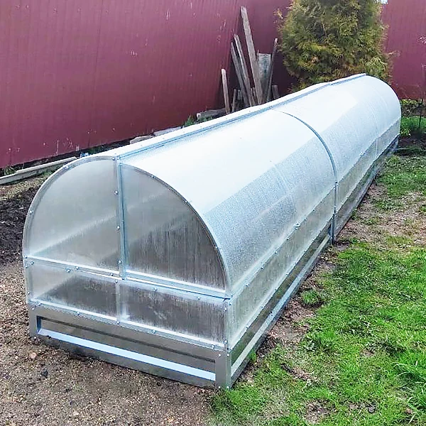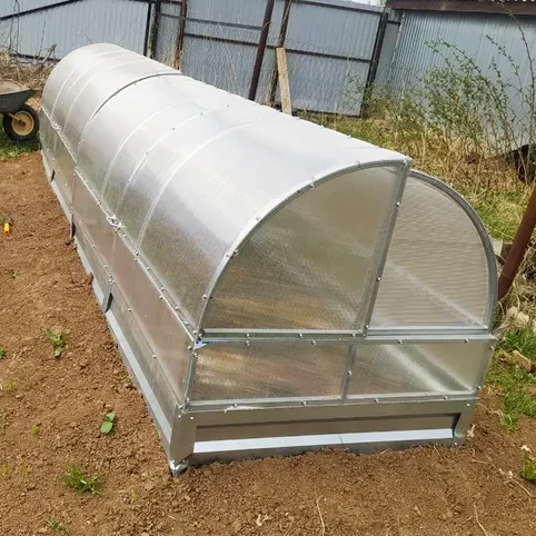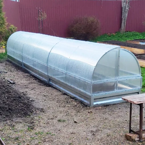 Каркас из оцинкованной трубы обеспечивает надежную поддержку и защиту от неблагоприятных погодных условий. В комплекте с парником идет поликарбонат, который обеспечивает отличное освещение и сохранение тепла внутри парника.